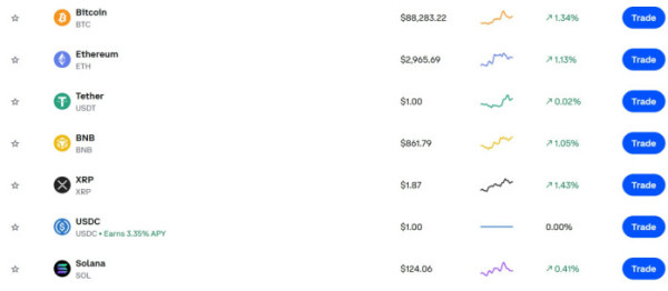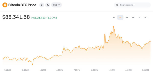 한국시간 31일 오전 7시 30분 기준 코인베이스에 따르면 비트코인은 8만8000달러 선에서 거래되며 전일 대비 1%대 상승했다. 이더리움과 리플(XRP), 솔라나, 바이낸스코인(BNB) 역시 나란히 오름세를 보였고, 테더(USDT)와 USDC는 1달러 부근에서 안정적인 흐름을 유지했다.