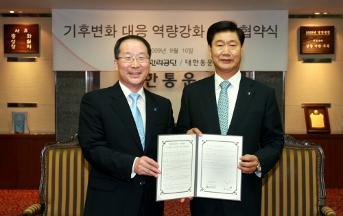 대한통운은 10일 "환경관리공단과 '기후변화 대응역량 강화 협력을 위한 협약'을 체결했다"며 "양측은 대한통운이 온실가스 인벤토리 구축 및 온실가스 감축에 적극 노력하고, 환경관리공단은 이에 대한 기술적 지원을 위해 노력한다는 내용을 담았다"고 밝혔다.