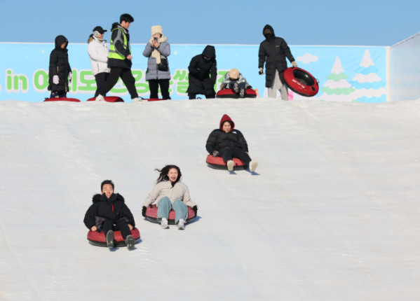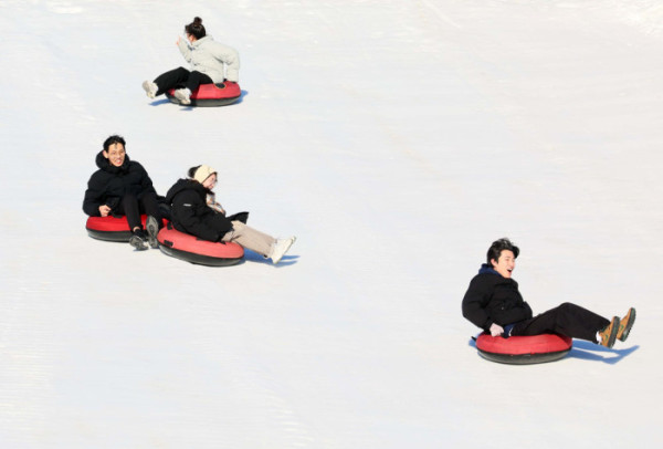 ▲서울 한강눈썰매장이 개장한 31일 서울 여의도 한강공원 눈썰매장에서 시민들과 외국인 관광객들이 눈썰매를 타며 즐겁게 한 해를 마무리하고 있다. 서울시는 이날부터 내년 2월 18일까지 총 50일간 뚝섬, 잠원, 여의도 한강공원 3곳에 눈썰매장을 운영한다. 운영 시간은 매일 오전 10시부터 오후 5시까지다. 기상 악화로 안전 우려가 있으면 시간이 조정될 수 있다. 매일 오후 1시부터 2시까지는 슬로프 관리를 위한 눈 정리 작업으로 시설 운영이 잠시 중단된다. 잠원 한강공원은 연말, 연초 분위기를 낼 수 있도록 개장일부터 1월 4일까지 매일 야간 개장한다. 이후에는 매주 주말에 오후 8시까지 운영한다. 신태현 기자 holjjak@