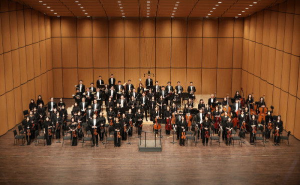 ▲경기필하모닉오케스트라가 경기아트센터 대극장에서 신년음악회를 앞두고 단체 기념사진을 촬영했다. (경기아트센터)