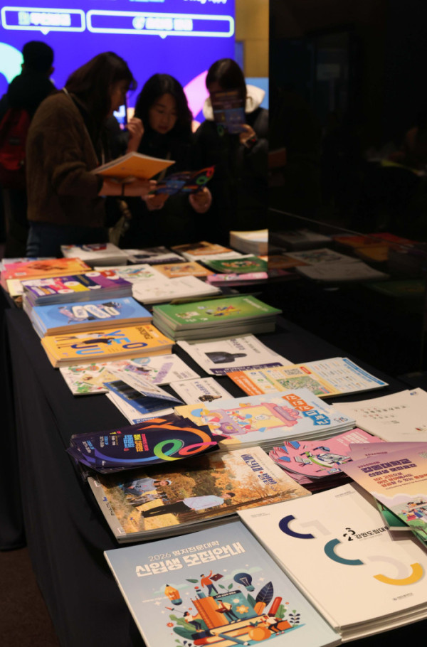 ▲2일 서울 강남구 코엑스에서 열린 ‘2026학년도 전문대 정시 입학 정보 박람회’에 행사장에 대학 소개자료가 비치돼 있다. 전국 27개 전문대학이 참여한 이날 행사에선 정시모집을 앞둔 수험생에게 대학 입학처 담당자와의 1대1 맞춤형 상담과 무료 원서접수 지원 등의 서비스가 제공됐다. 신태현 기자 holjjak@