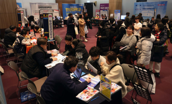 2일 서울 강남구 코엑스에서 열린 ‘2026학년도 전문대 정시 입학 정보 박람회’에서 수험생과 학부모들이 입시상담을 받고 있다. 전국 27개 전문대학이 참여한 이날 행사에선 정시모집을 앞둔 수험생에게 대학 입학처 담당자와의 1대1 맞춤형 상담과 무료 원서접수 지원 등의 서비스가 제공됐다.