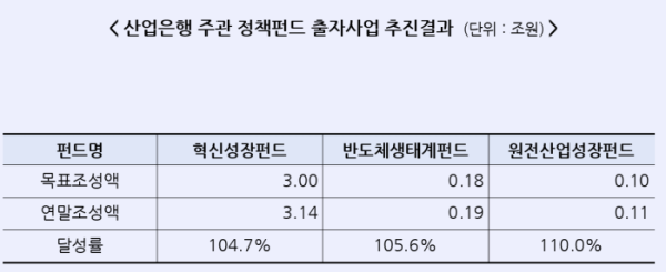 산은은 혁신성장펀드, 반도체생태계펀드, 원전산업성장펀드 등 주관한 모든 정책펀드의 2025년 조성 목표를 초과 달성했다고 5일 밝혔다.