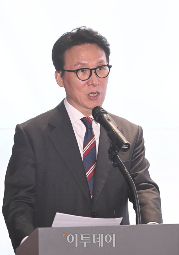 ▲김희철 한화오션 대표이사가 5일 서울 중구 한화오션 서울사무소에서 열린 한화오션 원·하청 상생협력 선포식에서 인사말을 하고 있다. 조현호 기자 hyunho@
