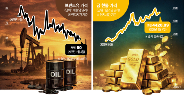 유가 내리고 금 오르고…글로벌 금융자산, 희비 엇갈려 [베네수엘라 격변 후폭풍]