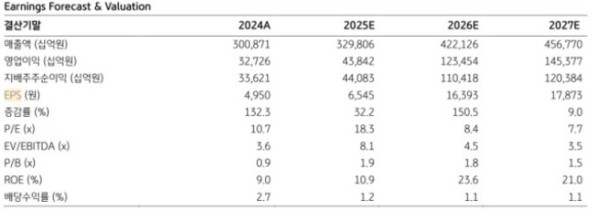 지난해 4분기에는 매출액 90조 원, 영업이익 20조3000억 원을 기록하며 2018년 3분기 영업이익 17조5000억 원을 기록한 이후 29개 분기 만에 최대 실적 달성을 기록할 것으로 봤다. 올 1분기 영업이익은 전년 대비 4배 증가한 25조2000억 원으로 전망했고, 2분기 영업이익은 전년 대비 6배 증가한 29조5000억 원으로 추정했다. 하반기 분기 영업이익은 평균 34조 원에 이를 것으로 예상했다.