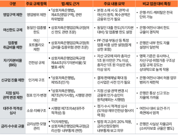 이에 보고서는 저축은행이 어떤 형태의 산업적 역할을 유지할 것인지, 기존 비즈니스 모델은 어떤 방식으로 재편될 수 있는지, 정책·감독체계는 어떠한 방향으로 조정돼야 하는지 등에 대한 본질적인 논의가 필요하다고 강조했다. 구체적 검토 과제로는 △영업구역 규제의 재검토와 단계적 완화 △동일 기능·동일 위험 원칙에 기반한 합리적 예금보험료 체계 조정 △자율적 인수합병(M&A) 활성화를 통한 구조 개선 △PF 공백을 보완할 대체 포트폴리오 구축 △내부통제 강화를 위한 관리 체계 재정비 등이 제시됐다.