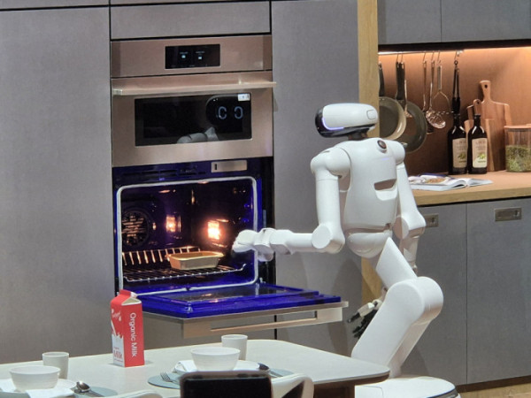 세탁 바구니 앞에 멈춘 클로이드는 검은색과 흰색 빨래를 구분해 각각 집어 들고 세탁기에 넣었다. 세탁이 끝난 뒤에는 손가락으로 수건을 접어 정리했다. 그 사이 로봇청소기와 상호작용하며 바닥의 장애물을 치웠고, 오븐에서 조리가 완료되자 “다 됐어요”라는 안내가 이어졌다.