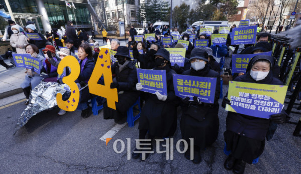 정의기억연대 활동가들과 참가자들이 7일 서울 종로구 구 주한일본대사관 앞에서 1734차 일본군성노예제 문제해결을 위한 정기 수요시위를 하고 있다. 한편 서울시는 이날 오후 9시부터 서울 동북권과 서북권에 한파주의보를 발효한다. 이번 한파주의보는 서울 동북권(도봉구·노원구·강북구·성북구·동대문구·중랑구·성동구·광진구)과 서북권(은평구·종로구·마포구·서대문구·중구·용산구) 14개 자치구에 발효된다. 한파주의보 발효에 따라 서울시와 14개 자치구는 한파 종합지원상황실을 가동하고 24시간 비상근무에 돌입한다. 조현호 기자 hyunho@