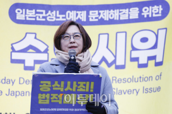 ▲이나영 정의기억연대 이사장이 7일 서울 종로구 구 주한일본대사관 앞에서 열린 1734차 일본군성노예제 문제해결을 위한 정기 수요시위에서 성명서 낭독을 하고 있다. 한편 서울시는 이날 오후 9시부터 서울 동북권과 서북권에 한파주의보를 발효한다. 이번 한파주의보는 서울 동북권(도봉구·노원구·강북구·성북구·동대문구·중랑구·성동구·광진구)과 서북권(은평구·종로구·마포구·서대문구·중구·용산구) 14개 자치구에 발효된다. 한파주의보 발효에 따라 서울시와 14개 자치구는 한파 종합지원상황실을 가동하고 24시간 비상근무에 돌입한다. 조현호 기자 hyunho@