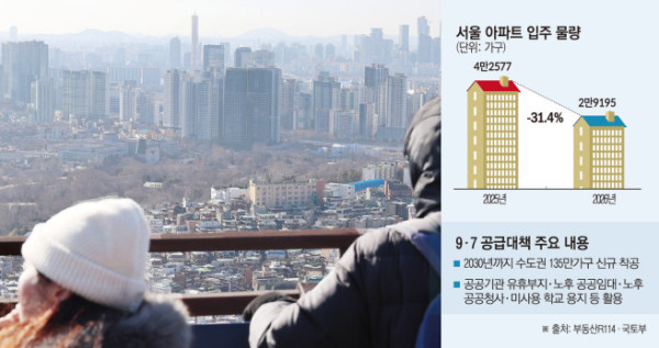 그러나 대대적인 공급 대책에도 서울 집값 상승세가 좀처럼 꺾이지 않으면서 정부는 조기에 가시적 성과를 보여야 하는 부담을 안게 됐다. 여기에 올해 서울 아파트 입주 물량이 급감할 것이란 전망까지 나오며 시장 불안은 커지는 분위기다. 부동산R114에 따르면 올해 서울 아파트 입주 물량은 2만9195가구로, 지난해(4만2577가구)보다 31.4% 줄어들 전망이다. 직방도 올해 입주 물량이 전년 대비 48% 감소할 것으로 분석했다.