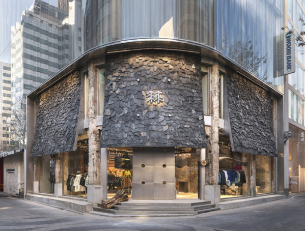 명동예술극장 인근에 들어선 코오롱스포츠 서울은 지상 1~2층 규모로, 브랜드 철학인 ‘자연과의 연결’을 공간에 구현했다.