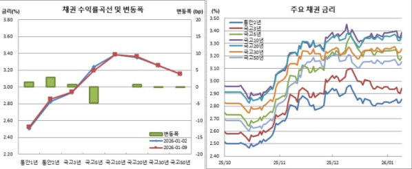 이밖에도 주초인 12일과 주후반인 16일 재정경제부가 국고채 3년물과 50년물 입찰을 실시한다. 3년물은 2조9000억원, 50년물은 8000억원 규모다. 미국에서는 13일(현지시간) 12월 소비자물가를, 14일 11월 소매판매를 발표한다.