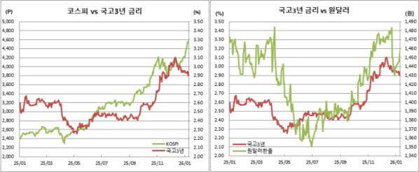 고공행진 중인 코스피와 원·달러 환율에 대한 곁눈질도 계속될 전망이다. 다만, 당장은 채권시장에 좋은 재료는 아닐 것으로 보인다.