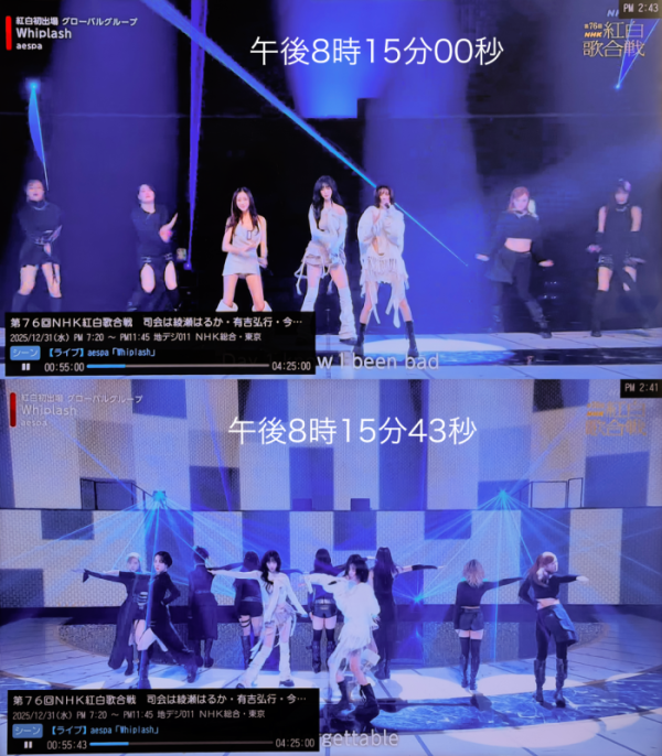 12일 일본 산케이신문 등 현지 보도에 따르면, 에스파는 지난해 12월 31일 ‘제76회 NHK 홍백가합전’에서 ‘오후 8시 15분’쯤 무대에 올랐다.