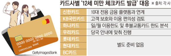 12일 카드업계에 따르면 은행계 카드사들은 금융당국이 예고한 ‘미성년자 체크카드 발급 연령 제한 폐지’ 가이드라인에 맞춰 시스템 정비와 상품 전략 수립에 나섰다. 단기 수익보다는 이른 시점부터 고객을 확보해 장기 이용자로 유도하겠다는 전략이다.