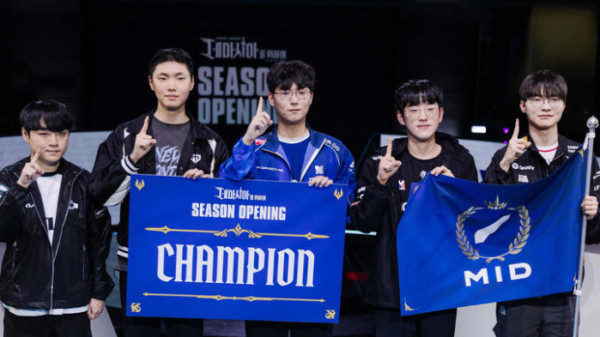 라이엇 게임즈는 9일 서울 종로구 치지직 롤파크 LCK 아레나에서 '롤 시즌 오프닝: 데마시아를 위하여'를 개최했다. 이번 대회에서 팀 미드는 각 포지션별 팀들과 맞붙어 3전 전승을 거두며 우승 트로피를 차지했다.