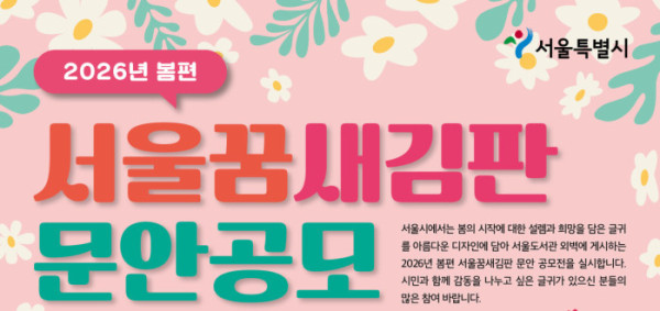 서울시가 ‘봄의 시작에 대한 설렘과 희망을 담은 글귀’를 주제로 한 ‘2026년 봄편 서울꿈새김판 문안 공모’를 23일까지 진행한다고 14일 밝혔다.