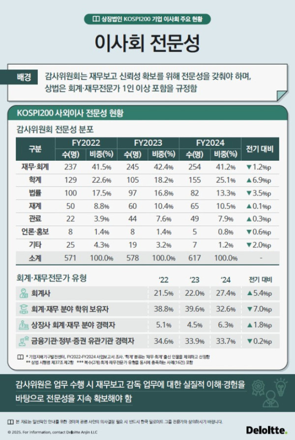 딜로이트 "코스피200 기업 감사위원 10명 중 4명, 재무·회계 전문가"