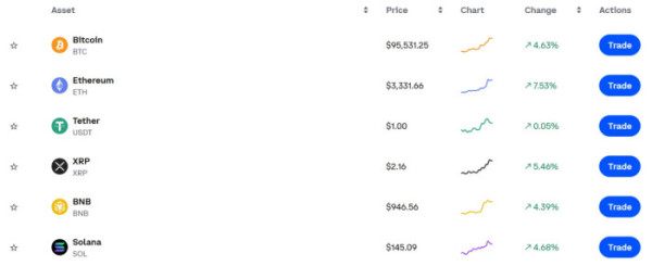 같은 시각 비트코인(BTC)은 9만5000달러 선을 회복하며 4%대 오름세를 보였고, 리플(XRP)은 5%대, 솔라나(SOL)는 5%대 상승률을 기록했다. BNB 역시 동반 강세를 나타내며 주요 가상자산이 일제히 반등했다.