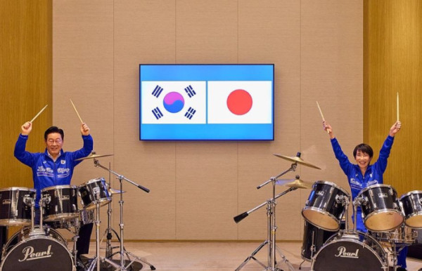 13일 김남준 청와대 대변인의 서면 브리핑에 따르면 이재명 대통령과 다카이치 총리는 정상회담과 공동 언론 발표를 마친 뒤 이어진 환담 자리에서 즉흥적인 드럼 합주를 선보였다. 두 정상은 일본 측이 준비한 푸른색 유니폼을 착용한 채 드럼 앞에 나란히 앉아 연주를 펼쳤다.