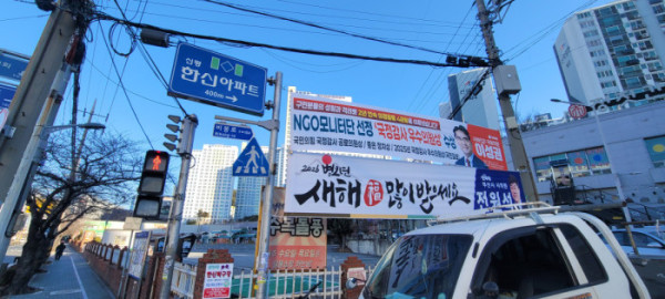 지역 정가에 따르면 전 의원은 최근 자신의 지역구인 하단·당리를 넘어 사하구 전역 주요 거점에 100여 장에 이르는 현수막을 게시했다. 특히 설 연휴까지 합법적으로 게시 가능한 문구인 "새해 복 많이 받으세요"라는 인사말을 활용해, 기존 활동 범위를 넘어 사하 '을' 지역까지 현수막을 확장 배치, 사하구 전 지역에 현수막을 게첩한 점이 주목된다.