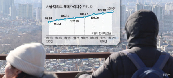 15일 한국부동산원이 발표한 ‘1월 둘째 주(12일 기준) 주간 아파트가격 동향’에 따르면 서울 아파트 매매가격은 전주 대비 0.21% 상승했다. 직전 주 상승률이 0.18%로 둔화했던 것과 달리, 한 주 만에 다시 오름폭이 확대됐다.