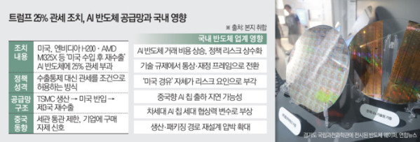 더 큰 문제는 트럼프 행정부가 ‘미국 내 산업 기여’를 기준으로 관세를 압박 수단으로 활용하면서 정책 불확실성이 커졌다는 점이다. 백악관은 이번 포고문 이후 반도체와 그 파생 제품에 대해 더 광범위한 관세를 부과하고 이에 상응하는 관세 상쇄 프로그램을 도입할 수 있음을 시사했다. 대만이 미국과 관세 협상을 진행 중인 가운데 협상 결과에 따라 한국에도 유사한 수준의 관세 체계가 적용될 가능성이 거론된다. 업계 관계자는 “한국이 다른 국가보다 불리한 위치에 놓일 가능성은 크지 않다”면서도 “미국 정책 변화에 따라 전략을 유연하게 조정해야 하는 부담은 커졌다”고 말했다.