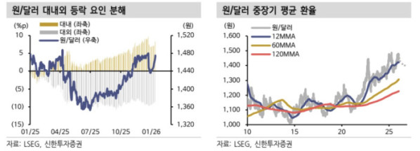 다만 단기적으로는 ‘심리적 상단’이 형성됐다는 평가다. 하 연구원은 “이번 개입으로 원·달러 환율 고점 인식이 확산되면서 레벨의 추가 상승 가능성은 제한적”이라며 “1월 이후 급반등은 대외 강달러 압력과 엔화 약세 연동, 투기적 매도세가 겹친 오버슈팅일 가능성이 크고, 1400원 중후반대에서 심리적 저항선이 형성돼 추가 원화 약세를 제한할 것”이라고 말했다.