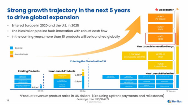 이날 발표의 핵심은 헨리우스가 공개한 ‘향후 5년 성장 로드맵’ 슬라이드였다. 헨리우스는 해당 장표에서 출시 예정인 수많은 파이프라인 중 AC101(HLX22)을 포함한 단 3개 약물에만 ‘블록버스터’라는 칭호와 함께 붉은색 별 표식을 부여했다고 한다.