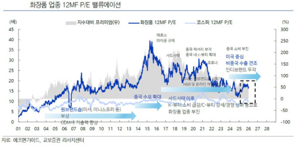 향후 투자 전략으로는 미국 시장의 오프라인 확대와 신흥 시장 다변화가 핵심 키워드로 꼽혔다. 권 책임연구원은 “2026년 화장품 업종은 미국 오프라인 시장 확대와 유럽, 중동, 중남미 지역 다변화를 통해 성장 모멘텀을 이어갈 것”이라며 “올해도 상반기 성수기 시즌에 맞춰 주가는 다시 리레이팅할 것”이라고 강조했다.