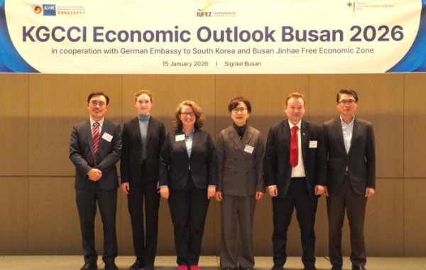 주한독일상공회의소(KGCCI, 대표 마리 안토니아 폰 쉔부르크)는 16일 부산진해경제자유구역청(청장 박성호)과 함께 전날 시그니엘 부산에서 ‘2026년 경제 전망(2026 KGCCI Economic Outlook)’ 행사를 개최했다고 밝혔다. 이날 1부 포럼에는 정·재계 인사 50여 명이 참석했으며, 2부 특별 만찬에는 국내 주요 독일 기업 관계자 등 120여 명이 자리했다.
