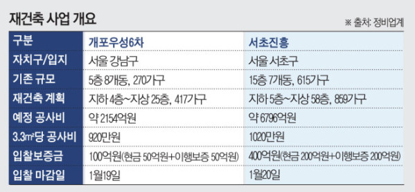 서울 강남구 개포우성6차와 서초구 서초진흥 아파트를 시작으로 올해 정비사업 시공권 수주전이 본격화할 전망이다. 강남 핵심 사업장에서의 결과가 여의도·목동·성수 등 다른 지역 대어급 정비사업에 경쟁에도 영향을 미칠 수 있다는 점에서 치열한 경쟁이 예상된다.