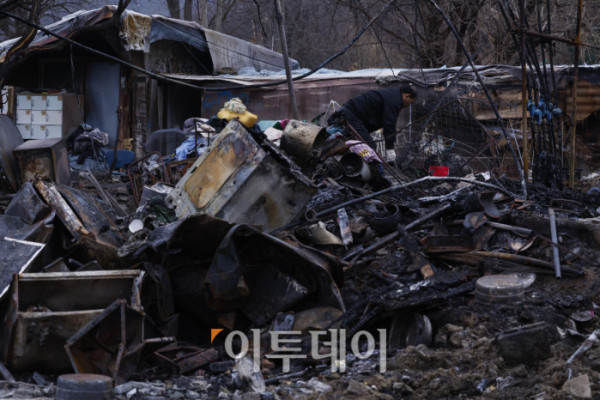▲18일 서울 강남구 개포동 구룡마을 화재 현장에서 한 주민이 불에 탄 잔해 속 물품을 정리하고 있다. 16일 오전 5시쯤 구룡마을 4지구에서 발생한 화재로 소방당국은 대응 2단계를 발령해 6시간 30여 분만에 불을 진화했다. 이 과정에서 소방 343명과 경찰 560명 등 인력 1258명과 장비 106대가 투입됐다. 인명 피해는 없었으나 165세대 258명이 대피했고, 이 중 129세대 181명이 이재민이 됐다. 관계 당국은 19일 합동 감식에 나설 예정이다. 조현호 기자 hyunho@