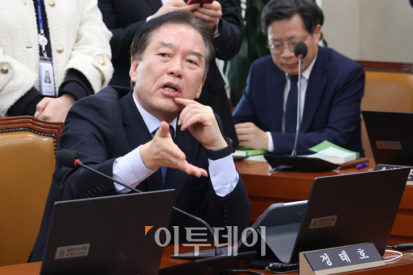 ▲19일 서울 여의도 국회에서 열린 재정경제기획위원회 전체회의에서 여당 간사인 정태호 더불어민주당 의원이 발언을 하고 있다. 고이란 기자 photoearn@