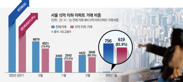 정부의 10·15 대책 이후 서울 아파트 거래의 무게중심이 '15억 원 이하' 아파트로 이동하는 흐름이 뚜렷해졌다. 고가 주택을 겨냥한 금융 규제가 강화되면서 상대적으로 대출 문턱이 낮은 중저가 아파트로 수요가 몰린 것으로 풀이된다.