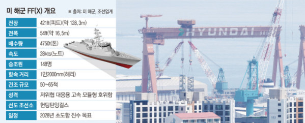 한승한 SK증권 연구원은 “FF(X)는 기존의 DDG-51 Flight III 및 향후 BBG(X)와 함께 함대 전력 구성을 이뤄 저강도 위협과 마약 단속과 같은 임무에 집중할 계획”이라며 “이는 무엇보다 납기 지연 문제를 해결하고 ‘속도’를 중요하게 여기고 있다는 뜻”이라고 말했다.