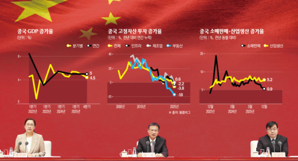 중국이 지난해 경제성장률 목표를 달성했다. 다만 내수 부진과 디플레이션에 분기마다 성장률이 낮아지면서 새해 경기 반등이라는 과제를 안게 됐다.