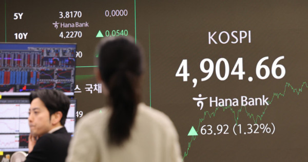 19일 코스피는 전 거래일 대비 63.92포인트(1.32%) 오른 4904.66에 거래를 마감했다.
