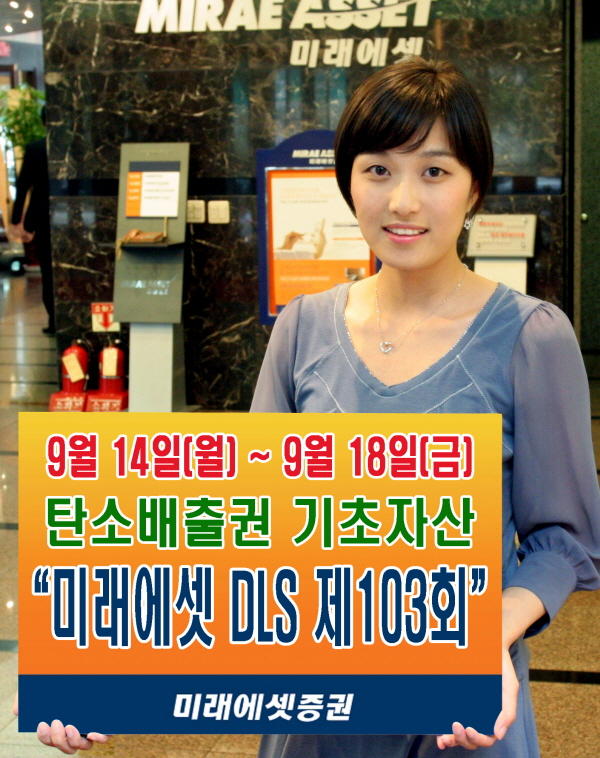 ‘미래에셋 파생결합증권(DLS) 제103회’는 탄소배출권(EUA) 2011년 12월 만기 선물을 기초자산으로 하는 원금보장형 상품으로 기초자산이 만기평가일까지 단 한번이라도 최초기준가격(2009년 09월 18일 종가)의 160%를 초과 상승한 적이 없고, 만기평가가격이 최초기준가격의 100%이상 160%이하인 경우에 가격 상승률의 50%를 수익(최대 30%)으로 지급한다.