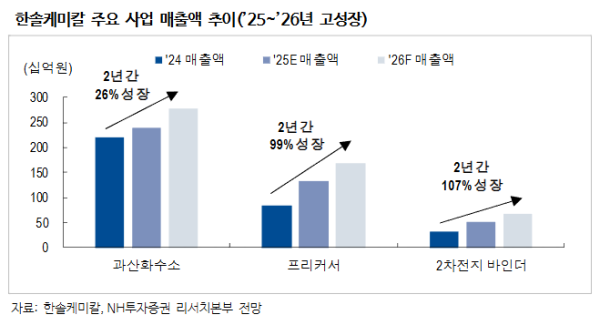 NH투자증권은 20일 한솔케미칼에 대해 반도체 업사이클과 이차전지 소재 사업 회복이 맞물리며 중장기 실적 성장성이 뚜렷하다고 분석했다. 이와 함께 투자의견 ‘매수’와 목표주가 32만5000원을 제시했다.