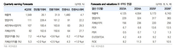 방산 부문은 미국향 수출 회복 가능성에 주목했다. 지난해 방산 내수·수출 비중은 약 6대4로 내수 비중이 높아졌지만, 이는 방위사업청향 대구경 공급 계약과 관세 영향에 따른 일시적 변화로 판단했다. 이 연구원은 “미국향 수출은 관세 부담 협상이 진행되며 점진적으로 회복될 것”이라며 “올해는 지난해보다 수출 비중이 다시 확대될 것”이라고 내다봤다.