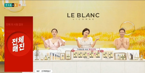 방송 쇼호스트는 김지혜가 맡았으며 하이엔드 라인 르블랑 리꼼(LeBlanc Licorne)의 핵심 제품 인텐시브 리페어 더블 이펙터(Intensive Repair Double Effect)는 방송 중 준비 수량 3143세트가 전량 판매됐다.