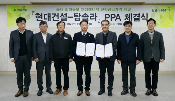 현대건설 관계자는 “이번 확약식은 태양광 중심의 국내 재생에너지 전력공급 시장의 신뢰도와 성숙도를 높이고, 국내 기업에게 안정적인 장기 전력공급이라는 실질적인 해법을 제시한 모범적인 민간 협력 사례”라며 “현대건설과 탑솔라는 향후에도 재생에너지 개발, RE100 이행 지원 등 다양한 영역에서 협력을 확대해 국가 에너지 선진화를 선도해 나가겠다”고 밝혔다.