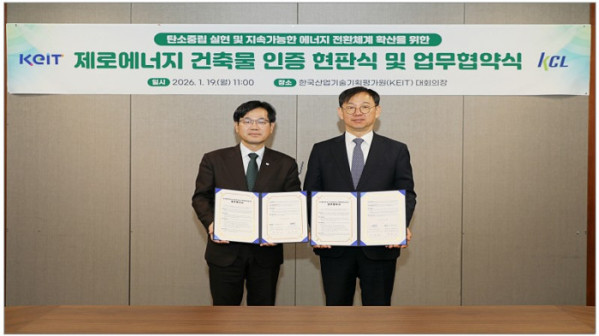 KEIT과 KCL은 업무협약을 통해 제로에너지건축물의 연구개발부터 인증, 실증, 운영에 이르는 전주기 연계 모델을 공동으로 마련하고, 건축물 에너지 성능의 정량적 진단 및 ZEB 인증 기반의 에너지전환 체계 확산에 협력하기로 했다.