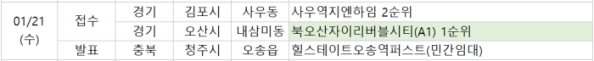 또 충북 청주시 '힐스테이트오송역퍼스트(민간임대)'는 이날 당첨자를 발표한다.