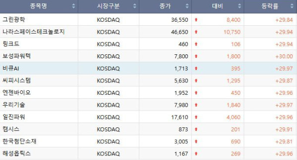 링크드, 캠시스, 비큐AI 등도 상한가를 기록했다.