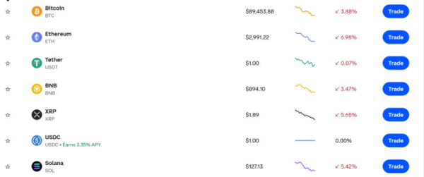 한국시간 21일 오전 6시 45분 기준 글로벌 거래소 코인베이스에 따르면 비트코인은 전일 대비 3.8% 하락한 8만9000달러 선(약 8만9400달러)까지 밀리며 9만 달러 선이 붕괴됐다. 이더리움은 7% 가까이 하락한 2990달러 안팎, 리플(XRP)은 5%대 하락한 1.8달러 후반에서 거래됐다. 솔라나 역시 5% 넘게 떨어져 120달러대 초반으로 내려앉았다.