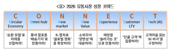 이번 키워드 선정에 참여한 서용구 숙명여대 교수는 “우리 삶과 가장 가까운 생활 밀착 산업인 유통은 이제 물건을 파는 단계를 넘어 흩어진 기술과 공간을 유기적으로 엮어 고객에게 새로운 가치를 제공하는‘연결의 경쟁’이 됐다”고 평가했다.
