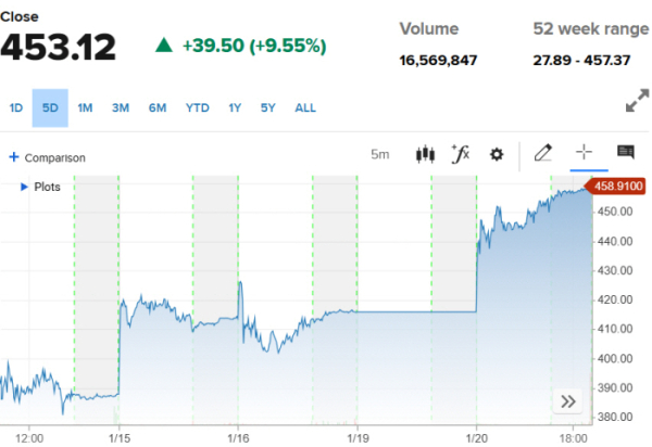 메모리 공급업체 샌디스크는 전 거래일 대비 9.55% 상승한 453.12달러(67만 원)에 마감했다. 뉴욕증시가 부진했지만, S&P500지수 종목 가운데 가장 크게 올랐다고 투자 전문매체 배런스는 설명했다. 주가는 올해 들어서만 이미 88% 급등했다. 지난주 TSMC 어닝서프라이즈를 기점으로 반도체 관련주가 강세를 보인 가운데 샌디스크는 랠리를 이어가고 있다.